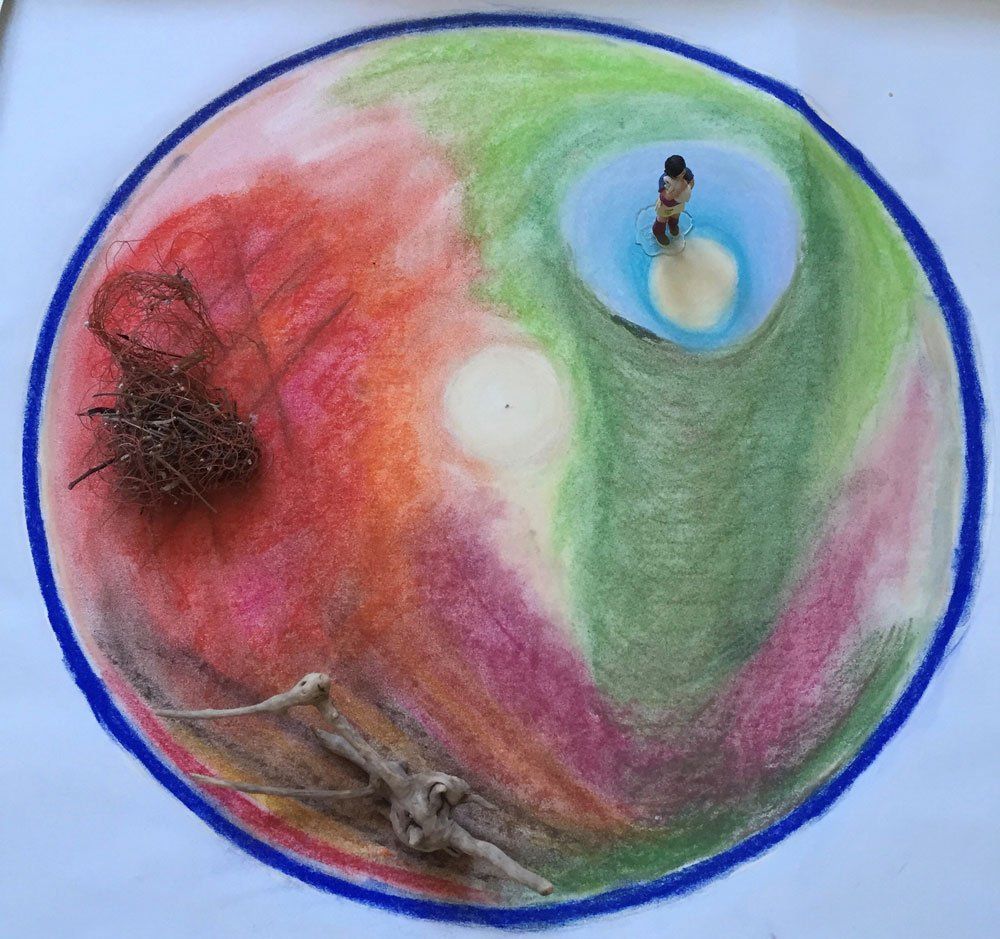 I offer in person trainings in sandplay and therapeutic art. I am often asked if I will provide these online: at the moment no. Sandplay and art are deeply sensory somatic processes. As we have discovered more about neuroscience, we now understand how every part of the brain is impacted by these sensory therapies and online sandplay cannot have the same impact. It is a different way of working. I have been in practice many years – long before we had the internet to rely upon and expand us. Most of my training has been in person. I have travelled far and wide and enjoyed short stays away from home when I can immerse myself in what I am studying or simply had time to myself to stop and reflect and Be. The courses I run offer an opportunity to make connections, with ourselves and others, professional relationships are built and friendships too. There is time for discussion during the talks which expands everyone’s awareness and knowledge and more informal discussion over coffee and lunch. I have consistent feedback from participants about the value of this. I love holding the space for people to grow and develop personally and professionally. These trainings feel like a journey, and I love to accompany participants in this.